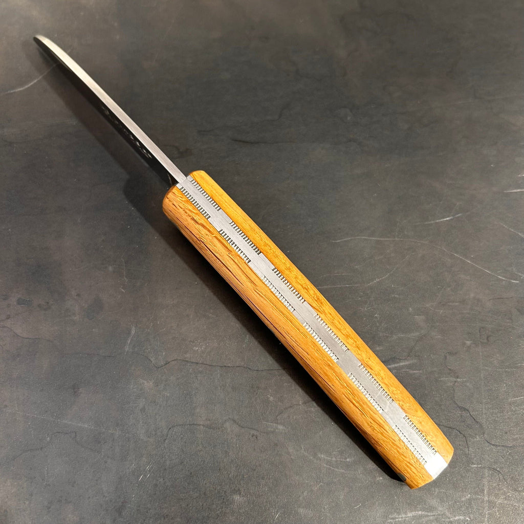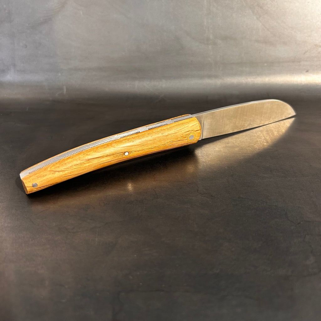 Ce couteau est fabriqué dans notre atelier de Marcillac en Aveyron, France. Son montage, polissage et affûtage sont exclusivement réalisés à la main dans la plus pure tradition coutelière, c'est à dire par un seul et même coutelier.