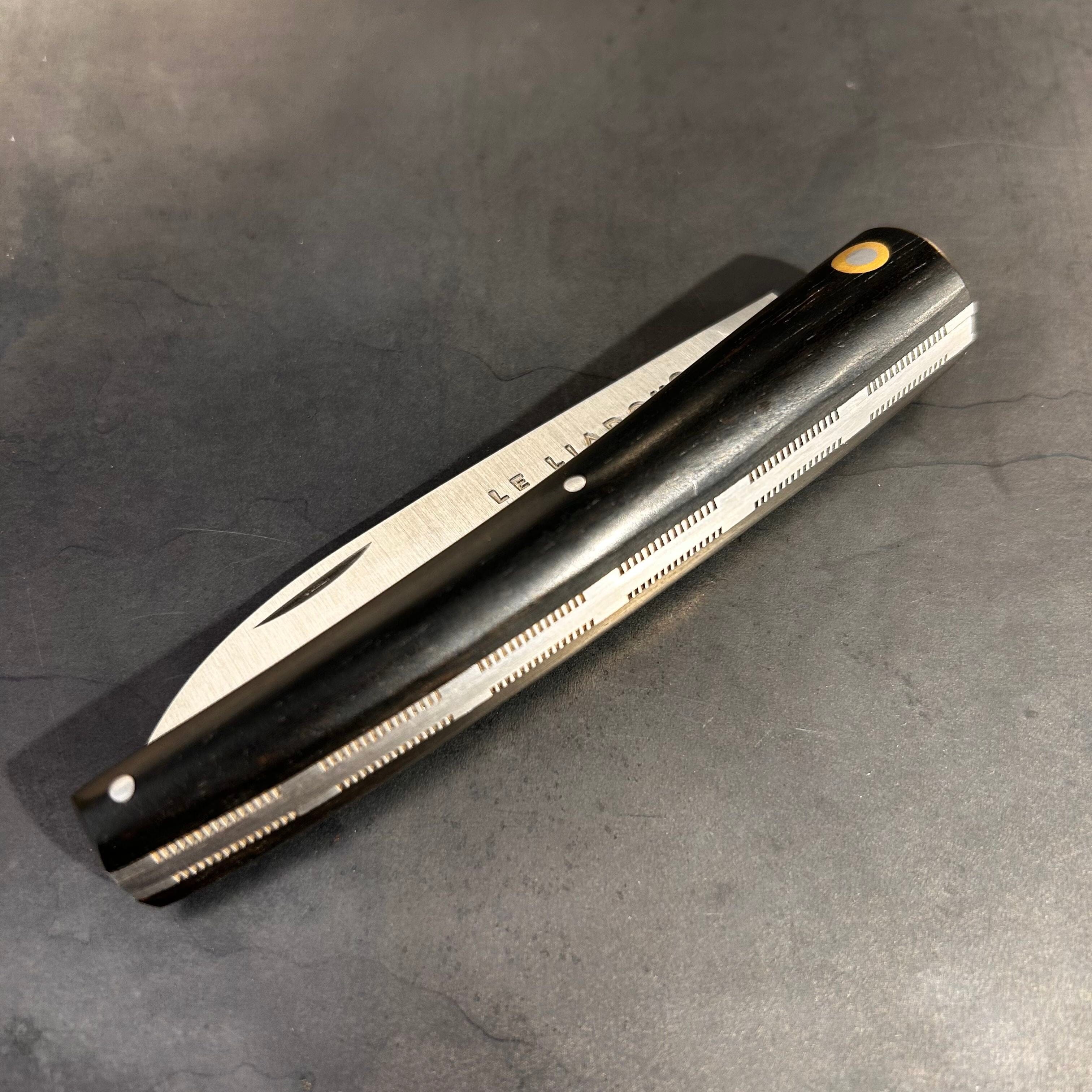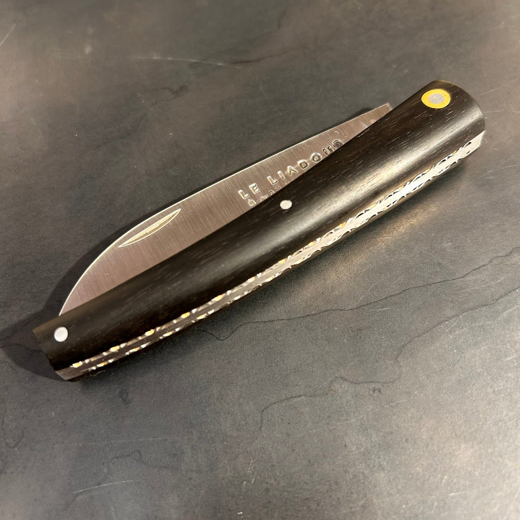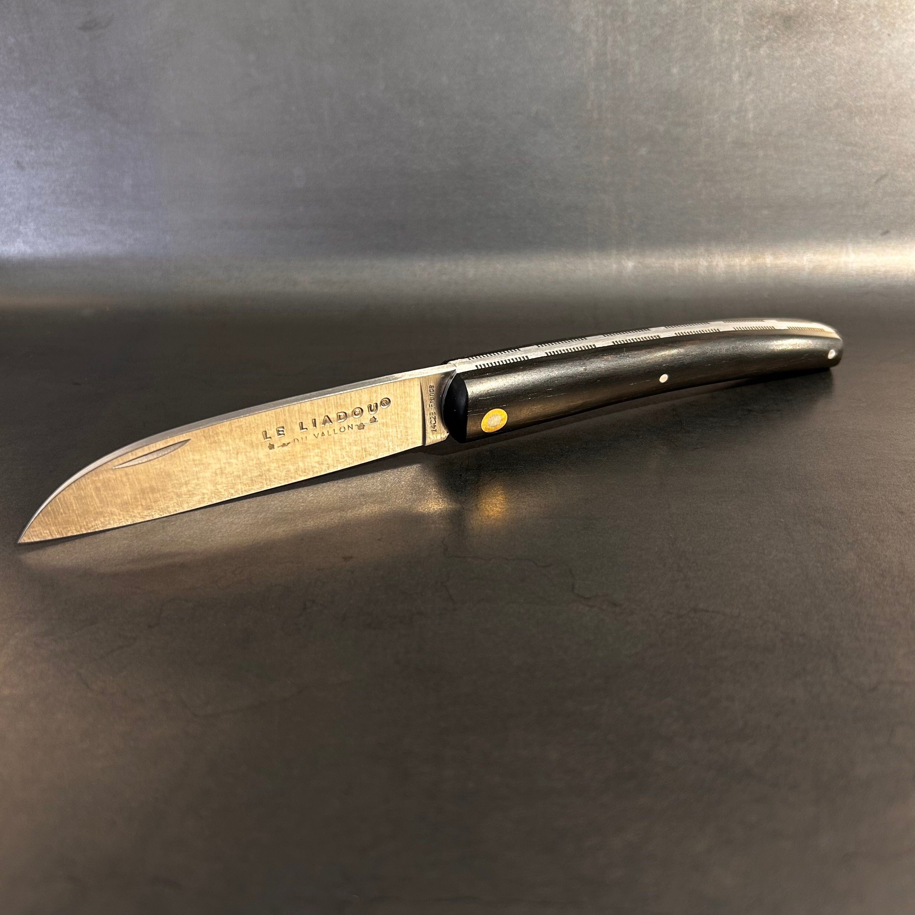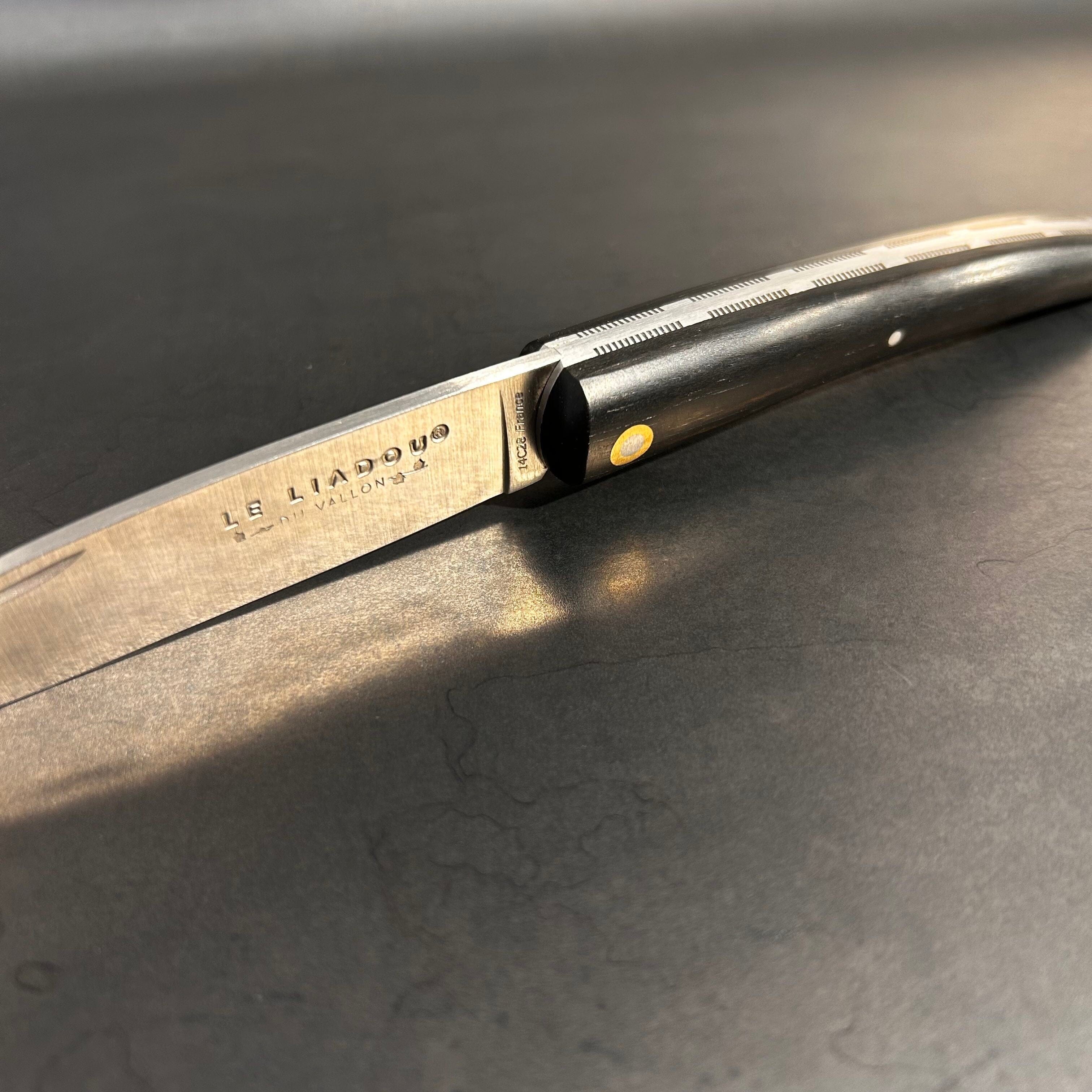Ce couteau est fabriqué avec le plus grand soin. Les matériaux du manche sont soigneusement sélectionnés parmi les plus belles essences ou matières. Il est façonné à la main dans la plus pure tradition coutelière. La lame est réalisée dans les aciers les plus performants et porte la marque déposée Le Liadou du Vallon ® garantissant la qualité et l’origine de ses produits.