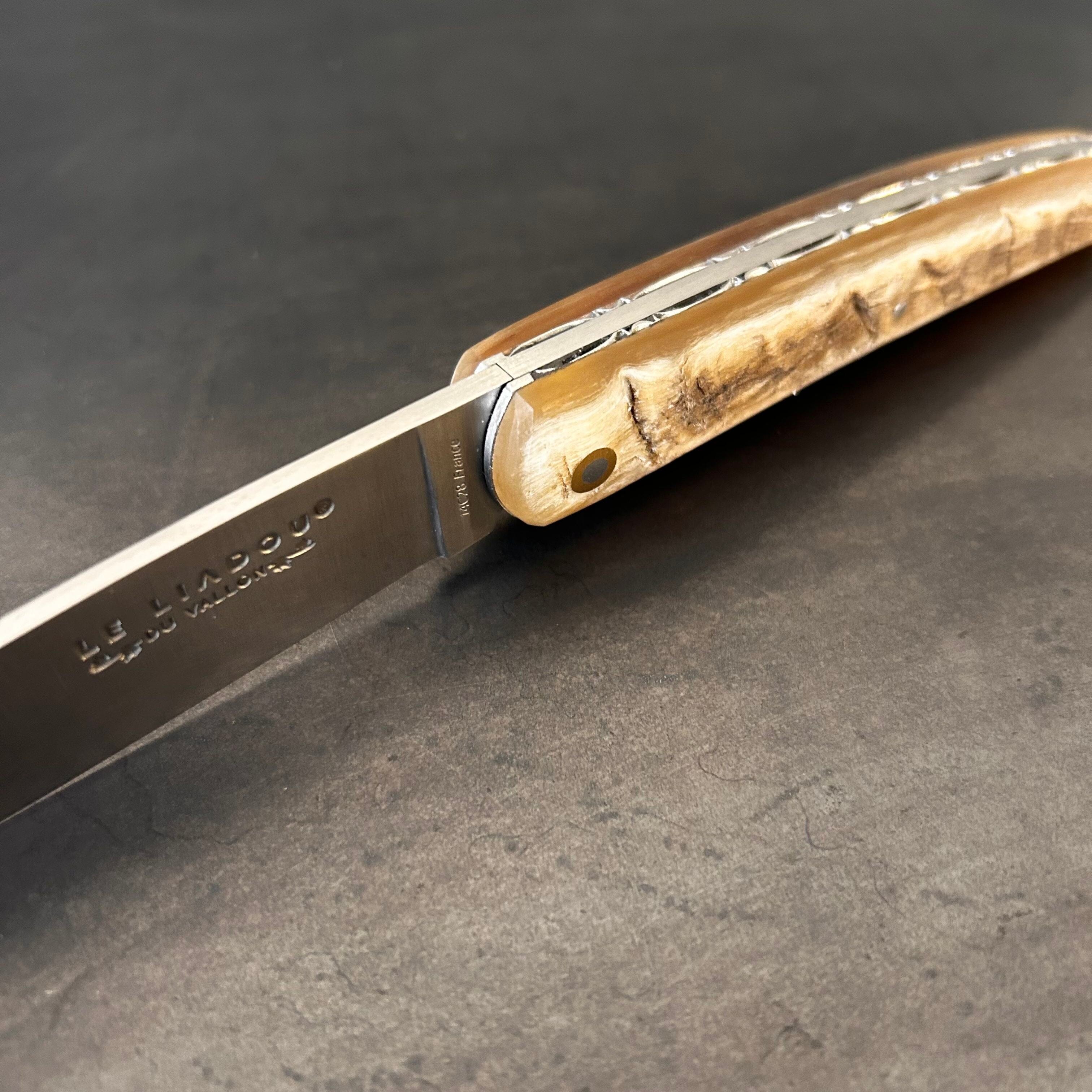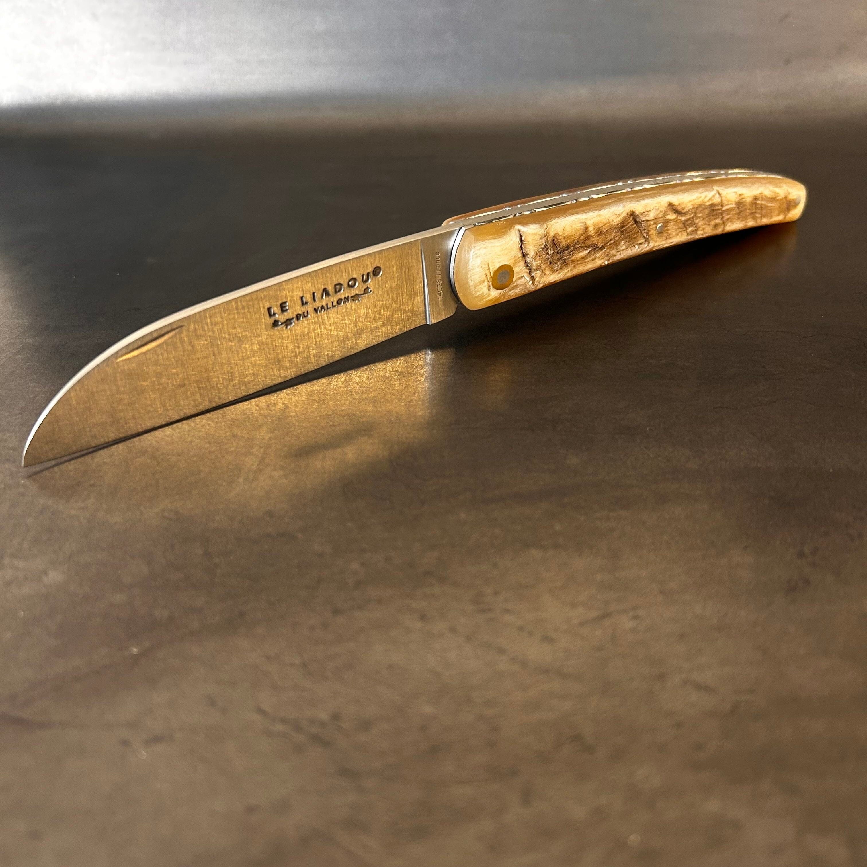 This knife is made with the greatest care. The handle materials are carefully selected from the most beautiful species or materials. It is handcrafted in the purest cutlery tradition. The blade is made from the highest performing steels and bears the registered trademark Le Liadou du Vallon ® guaranteeing the quality and origin of its products.
