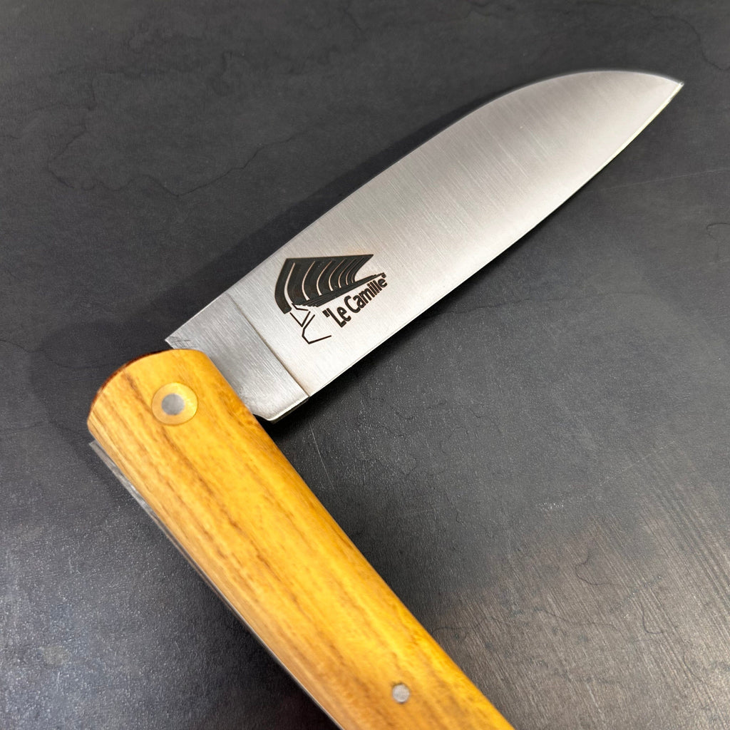 This Liadou® “Le Camille” features a Sandvik 14C28 stainless steel blade engraved with a design of the stadium’s grandstand. Each knife is entirely handmade in our workshop in Marcillac-Vallon, Aveyron. The registered trademark Le Liadou du Vallon® guarantees the quality, origin, and authenticity of its products.