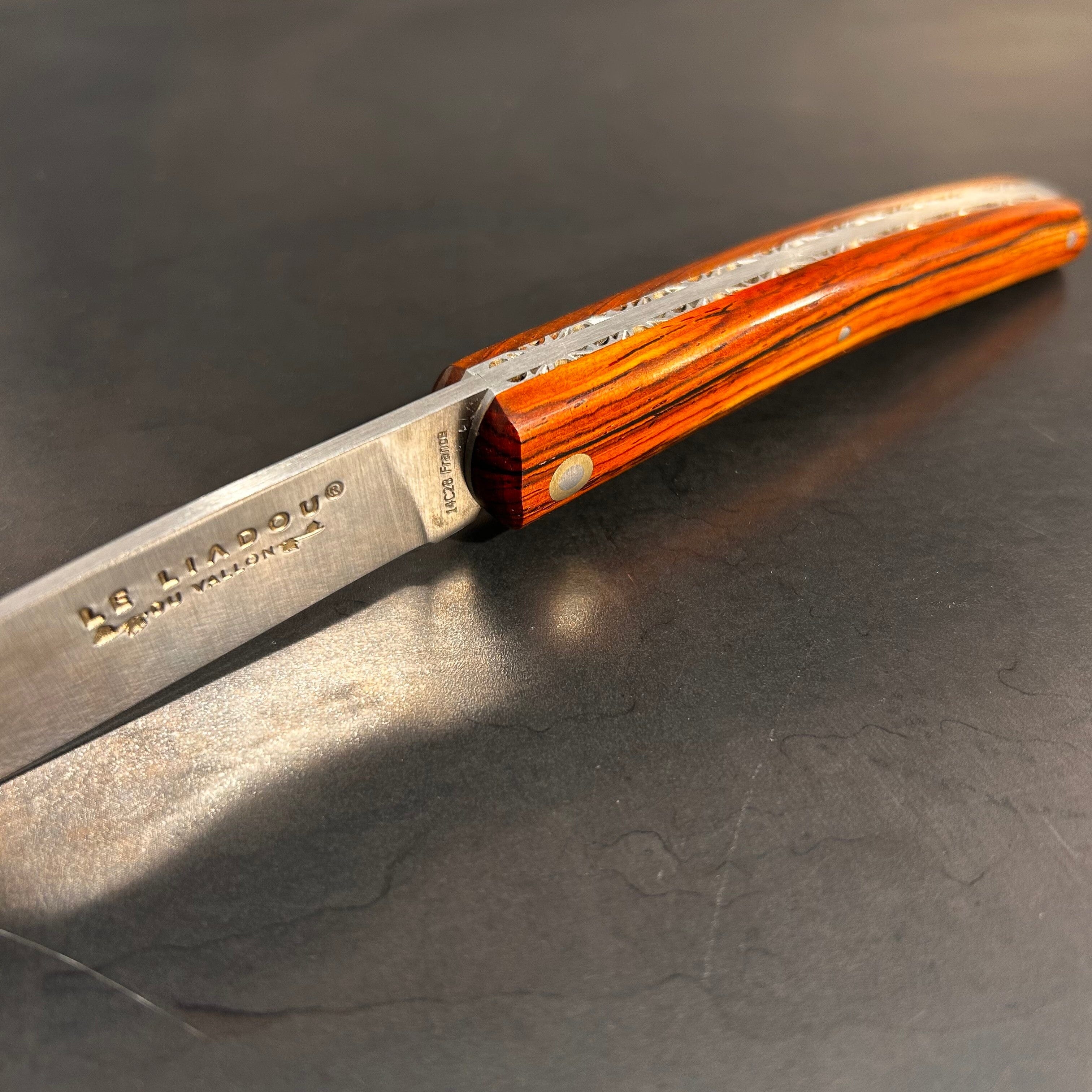 We take the greatest care in the manufacturing of our knives. The handle materials are carefully selected from the most beautiful species of precious wood, varieties of horns and other noble materials. Each knife is handcrafted in the purest cutlery tradition. The blade is made from the highest-performance steels and bears the registered trademark Le Liadou du Vallon ® guaranteeing the quality and origin of its products.