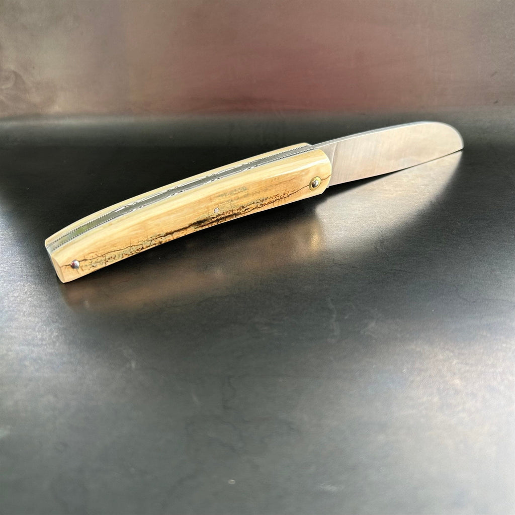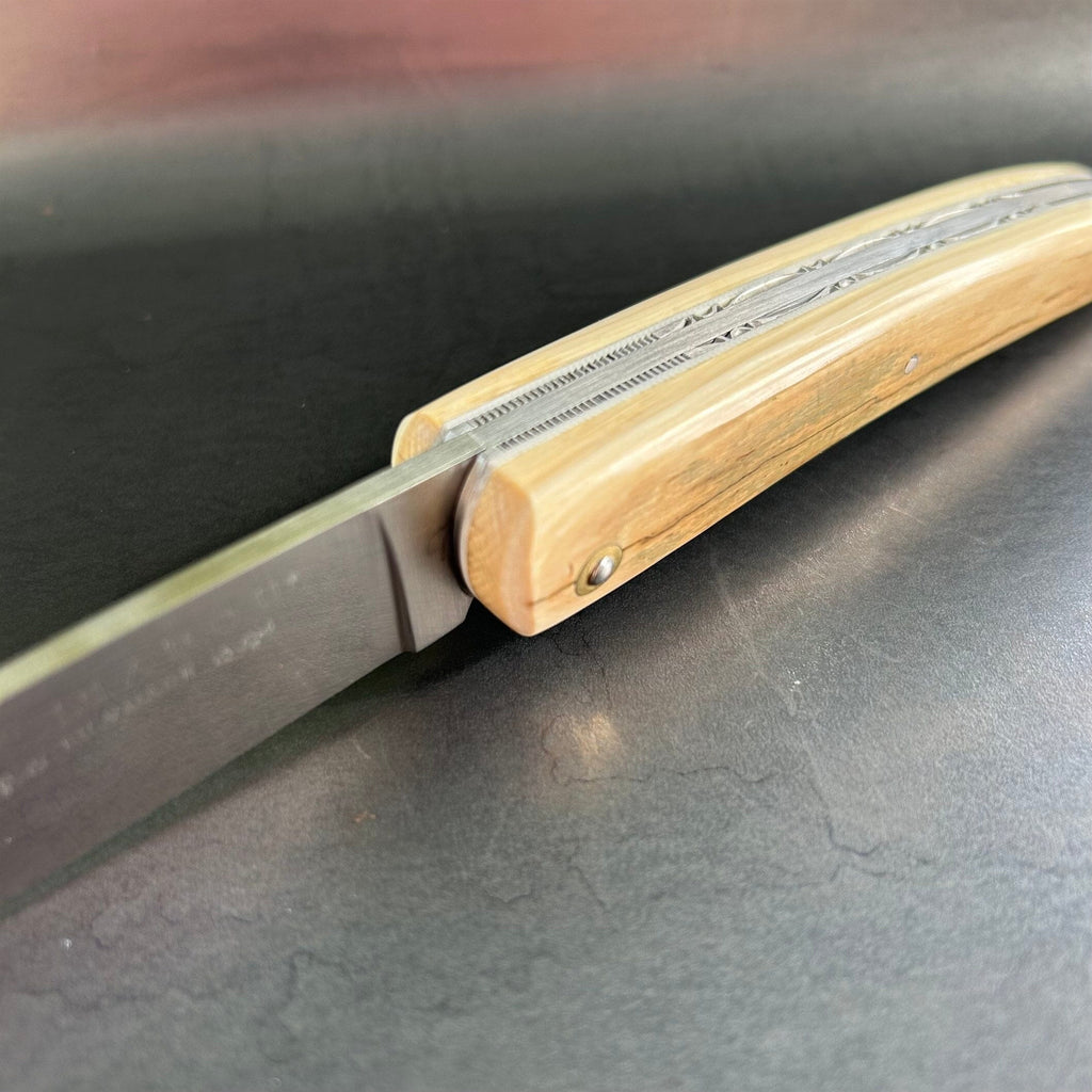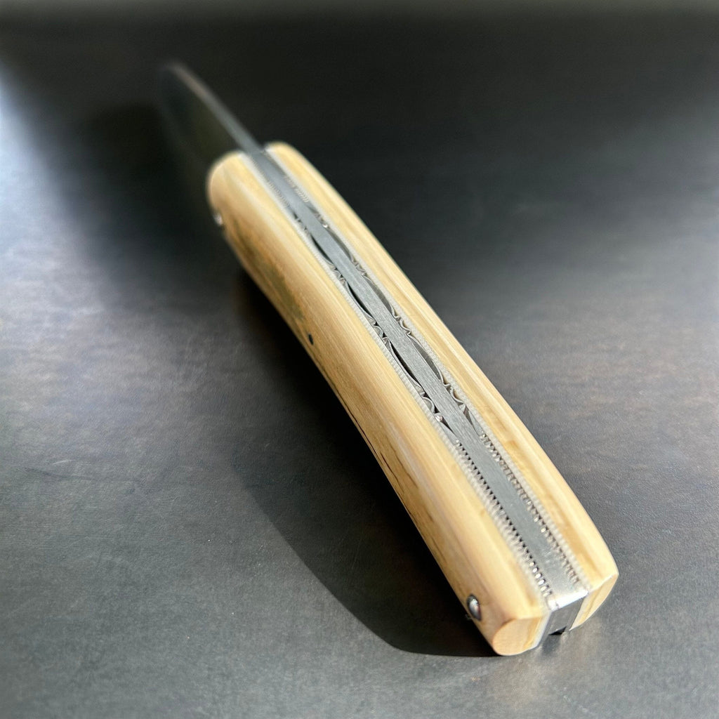 Ce couteau est fabriqué dans notre atelier de Marcillac en Aveyron, France. Son montage, polissage et affûtage sont exclusivement réalisés à la main dans la plus pure tradition coutelière, c'est à dire par un seul et même coutelier.