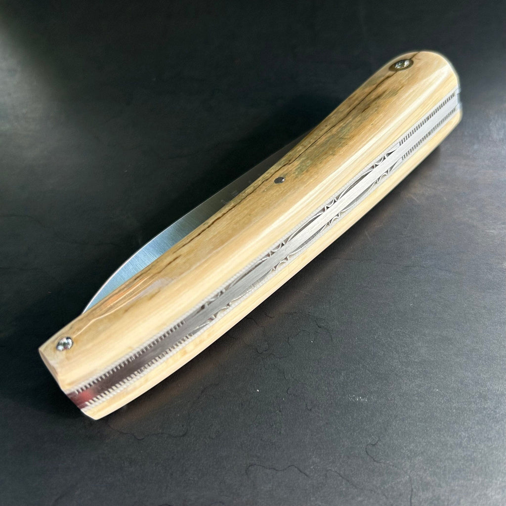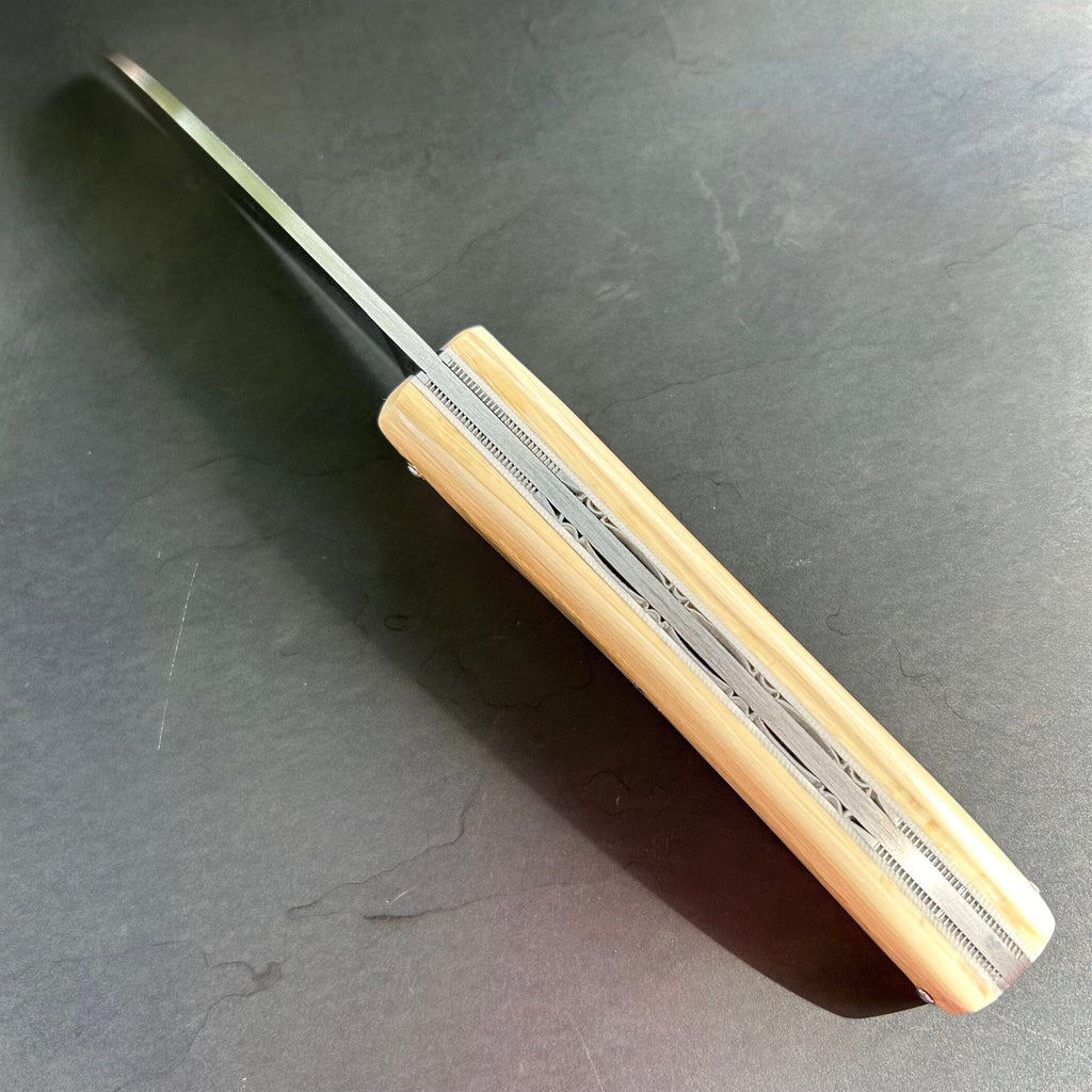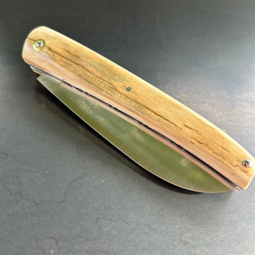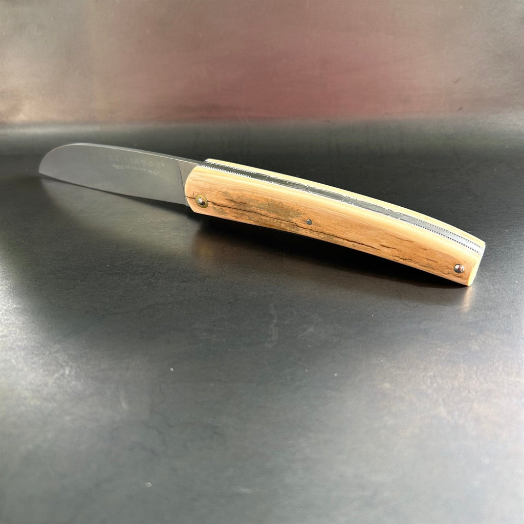 Ce couteau est fabriqué dans notre atelier de Marcillac en Aveyron, France. Son montage, polissage et affûtage sont exclusivement réalisés à la main dans la plus pure tradition coutelière, c'est à dire par un seul et même coutelier.