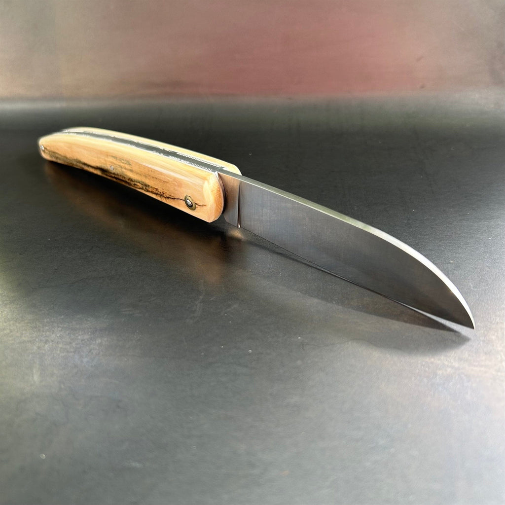 Couteau Le Liadou du Vallon ® Exception en Ivoire de Mammouth fossilisé, Platines Ciselées & lame RWL34.